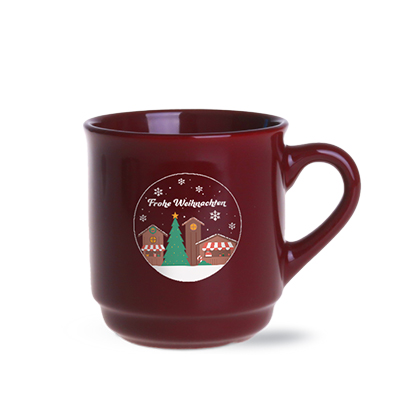 Kubek opracowany na potrzeby jarmarków świątecznych. Posiada klasyczny kształt uchwytu oraz prosty korpus, umożliwiający sztaplowanie.